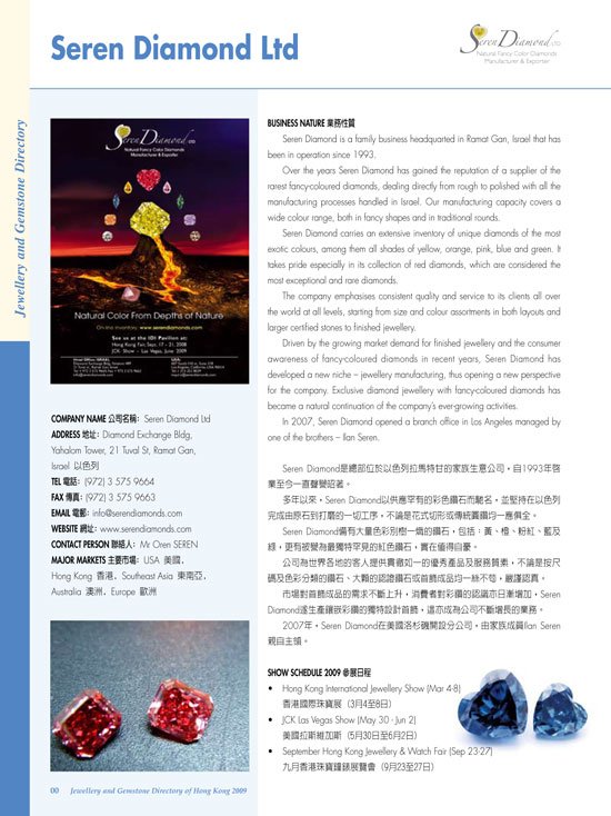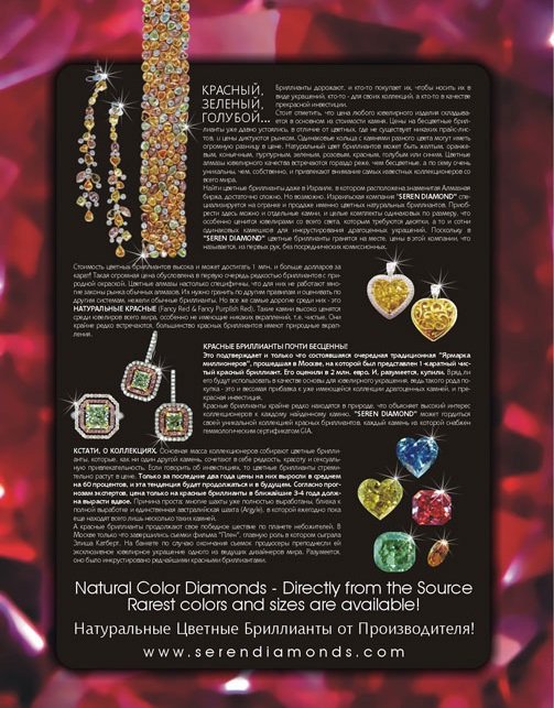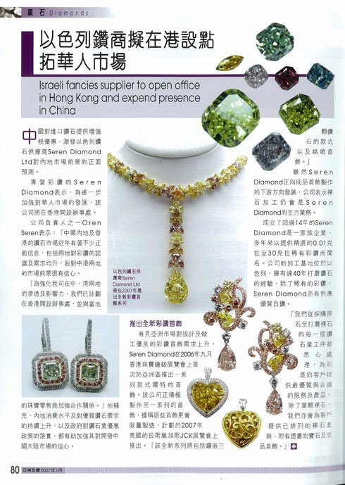 In 2008, Seren Diamond sponsored “Fashion Event” in the Sheraton City Tower Hotel, in the diamond district in Ramat Gan, Israel with the Israeli fashion industry. During the fashion show, models wore jewelry set with fancy color diamonds!