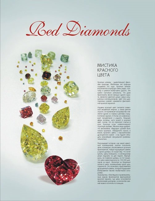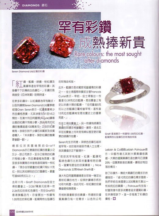 From Jewellery News Asia (JNA), English (Chinese) edition, June 2008, devoted to the fancy color diamonds, from the article - Rare colours: the most sought after diamonds.